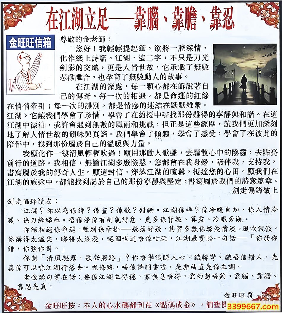 主题 :096期:金旺旺信箱彩民推荐→→《在江湖立足——靠腦、靠膽、靠