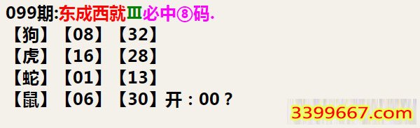 099期:东成西就Ⅲ必中⑧码