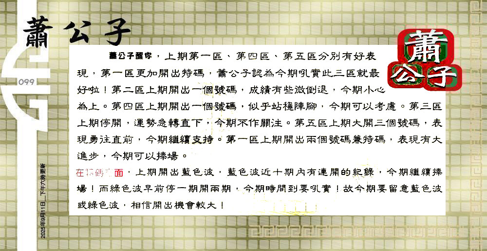 主题 :099期:六合皇金句/老总论码/萧公子/林大师/五行夺码/老总信箱截