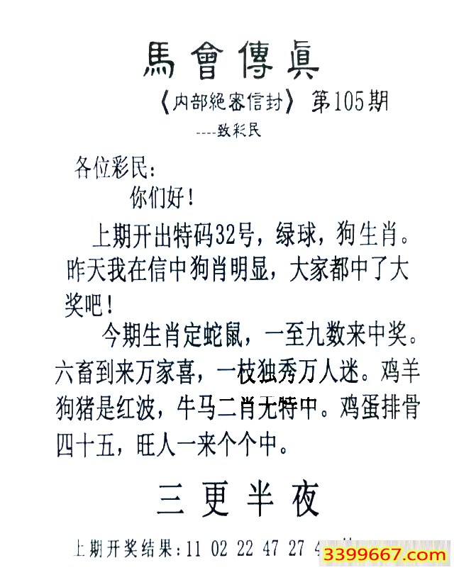 主题 :105期:首发推荐:≮馬會傳眞≯→(香港正版) |