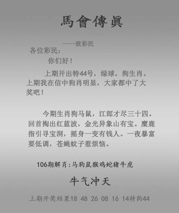 主题 :106期:正马会传真 |