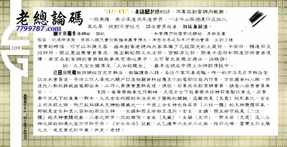 109期:六合皇金句/老总论码/萧公子/林大师/五行夺码/老总信箱截