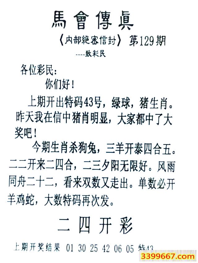 129期:首发推荐:≮馬會傳眞≯→(香港正版)