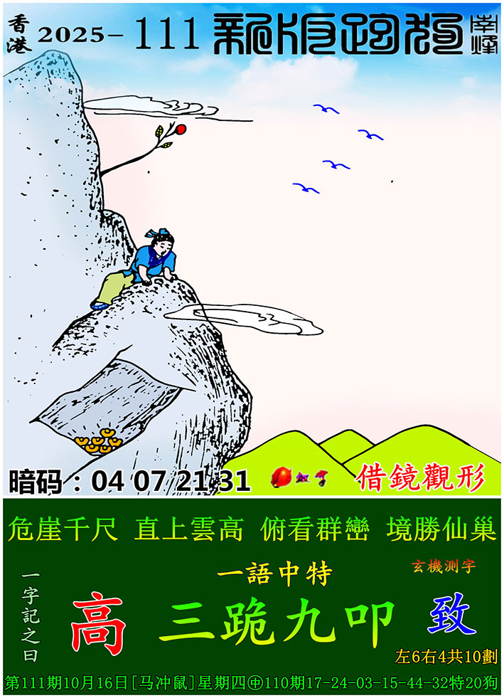 主题 :111期:新版跑狗一字記之曰【高】 玄機測字:【致】